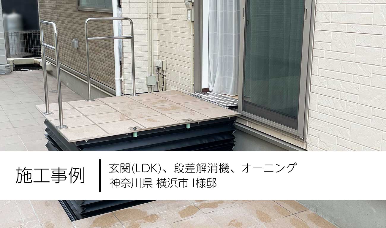 施工事例:神奈川県横浜市 I様邸:玄関(段差解消機、LDK、オーニング)バリアフリー工事【施工事例】