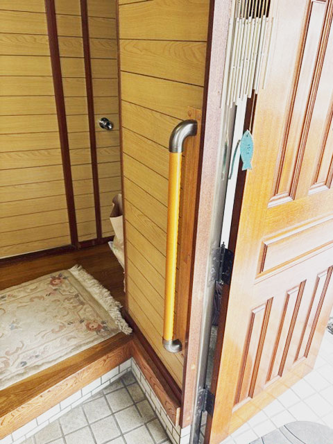 玄関の手すり:立ち座りと玄関ドアの開け閉めをサポート