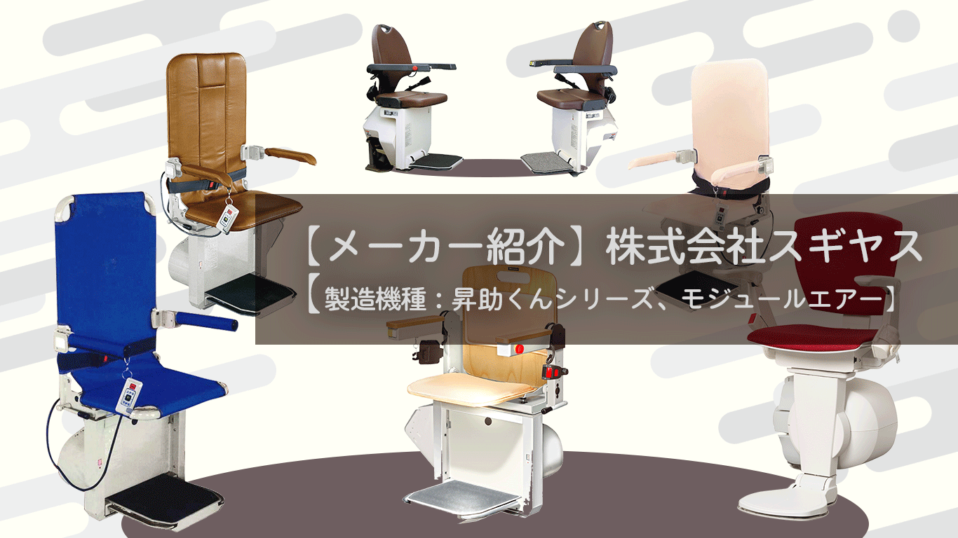 いす式階段昇降機の、数少ない国産メーカーのひとつである、株式会社スギヤス。主な事業は「住宅福祉機器事業」「環境機器事業」「自動車整備用機器事業」「物流機器事業」。